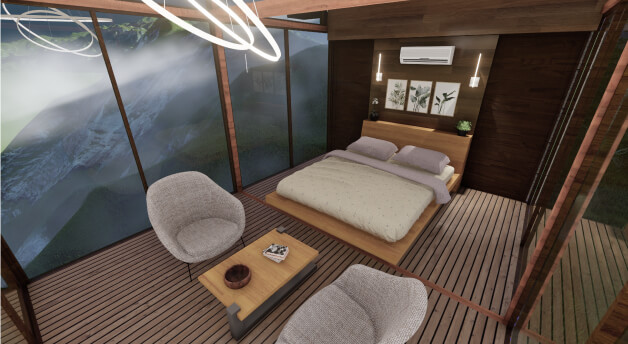 Wake up to the delightful comforts of sleek interiors wrapped in an elevated 360-degree panoramic view of luscious nature. Dulcet, the oh-so-stunning cabana, welcomes you to drift off into a dreamland where living on cloud-9 is a real experience.