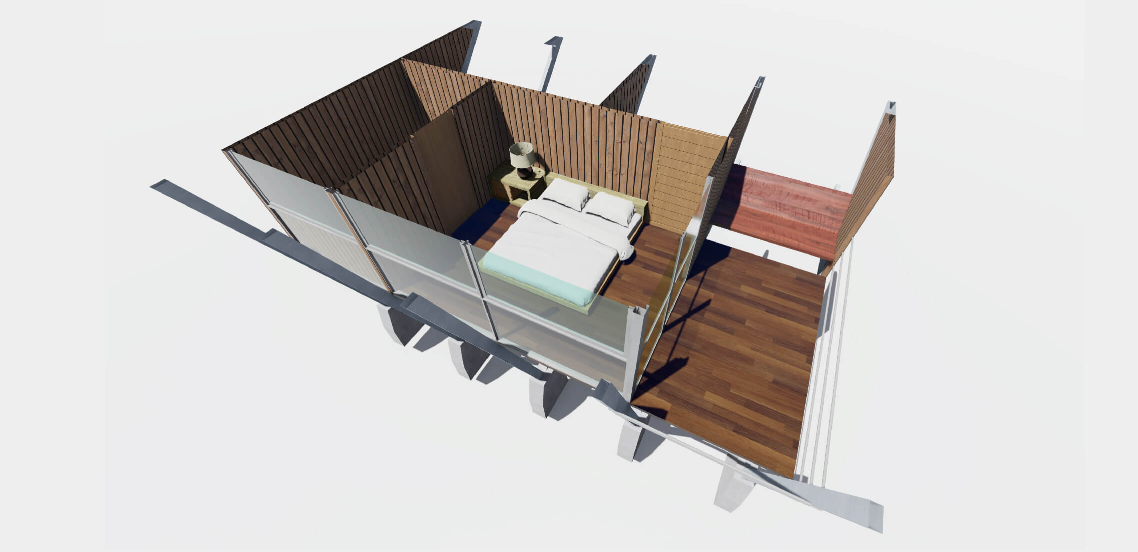 Creating the absolute clifftop getaway in solitude, Sierra offers glorious elevated views of nature from its balcony and bedroom. Snuggle under a blanket or sip a warm cup of hot chocolate as you soak in the spectral scenes of the surroundings. Ideal for a mountain property that calls for a strong, concise, and elevated unit.