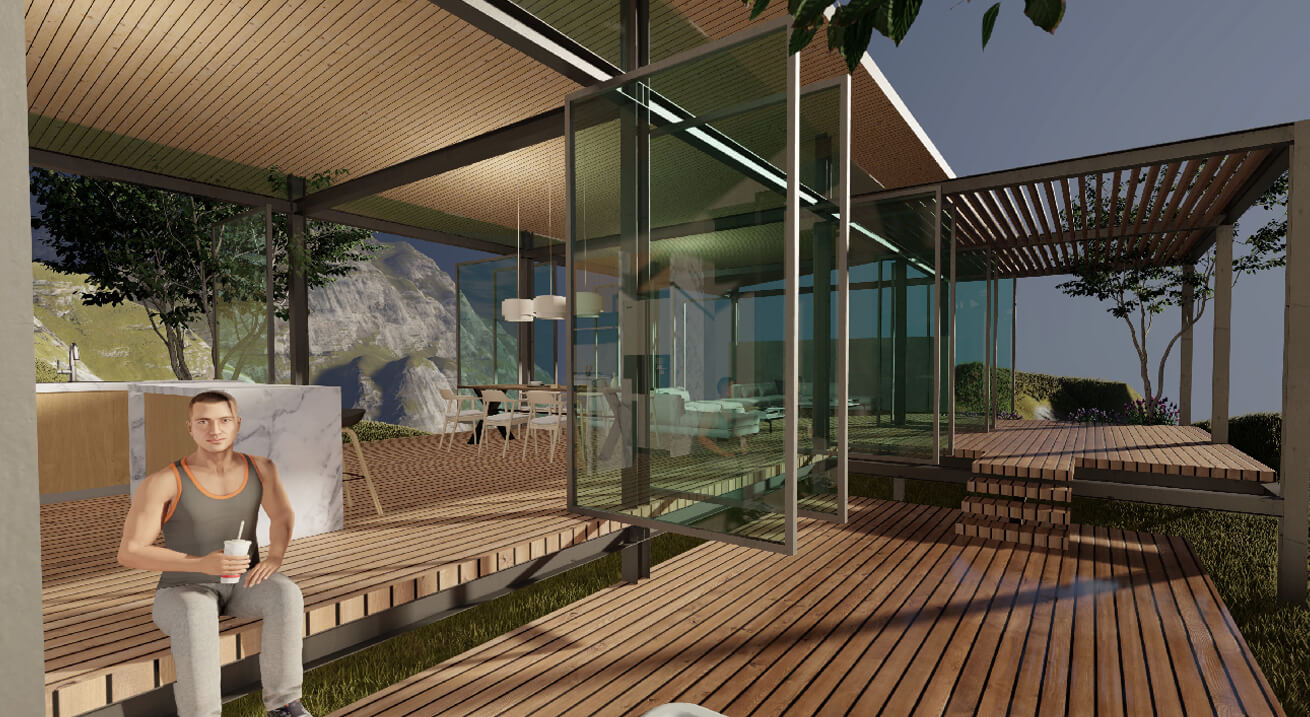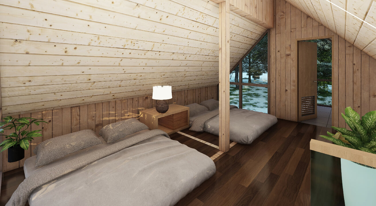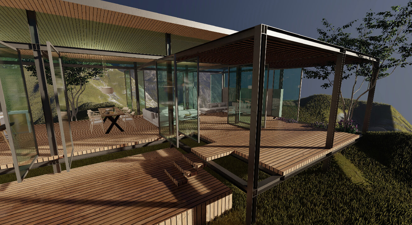 With an 800 sq. ft interior space of living, dining, and pantry that opens out to the exterior environment through glazed pivot windows and a 330 sq. ft semi-covered outdoor deck with a hot tub, you can soak in the beauty of the surrounding nature from the comfort of your home, as the breeze grace you with welcome notes.