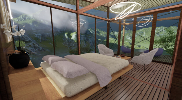 Wake up to the delightful comforts of sleek interiors wrapped in an elevated 360-degree panoramic view of luscious nature. Dulcet, the oh-so-stunning cabana, welcomes you to drift off into a dreamland where living on cloud-9 is a real experience.